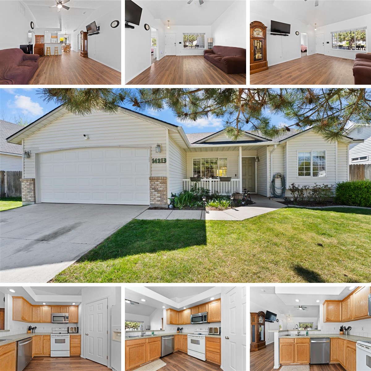 Single-level home in a well-maintained neighborhood. Located just minutes from Downtown, Indian Creek Plaza, College of Idaho, NNU, multiple golf courses and wineries, Lake Lowell, and a wide variety of dining & shopping options. Offering 4 bedrooms, 2 baths, plus a Bonus Room. Enjoy the charming covered front porch where the north-facing orientation helps keep the home’s entry cooler and more shaded. Inside, vaulted ceilings enhance the open layout & durable LVP flooring flows throughout the main living area. The kitchen features an eat-in breakfast bar, corner pantry, and spacious dining area. The split-bedroom design provides added privacy for the primary suite, complete with an en-suite bath and walk-in closet. Step outside to a generously sized backyard with side gate access, perfect for RV/boat parking. The included shed is perfect to store your garden tool or just extra storage. New roof in 2026!