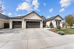 This Berkeley Building Semi-Custom Belmont Farmhouse Style Single Story with four (4) bedrooms, three (3) bath, and also a Tech Center for Office and/or homeschool options is a must see! This beauty features a corner placement with plush landscaping and inviting charming Entry to the home. When you enter you are greeted with an open feel of walking into the Great Room with Coffered ceilings, gas fireplace, open concept to the Kitchen for an Entertainment feel. The Kitchen has a large island and separate walk-in Pantry, and spacious dining area that opens to the backyard. The Windows offer views of all the Features and Upgrades to this home that include: Bull Kitchenette BBQ, covered Patio area, plus ShadeWorks Patio Extension and Cover with Electric shades, Gas Fire Pit, stunning Water Feature and plush landscaping and trees to create the perfect Escape. Two Master Suites in this home that include walk in showers in both, the Primary Master Suite has a large soaking Tub, and large walk in closet connected to the separate Laundry room that includes the Washer & Dryer too. Additional Upgrades include Central Vacuum plumbed, Mud Bench, Epoxy Garage, and also Water Softener with Reverse Osmosis too.